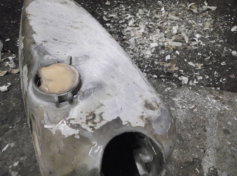パテで修復しました。ちなみに、海外のレストアラーは板金の