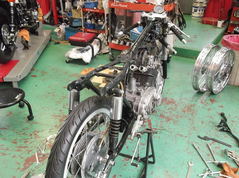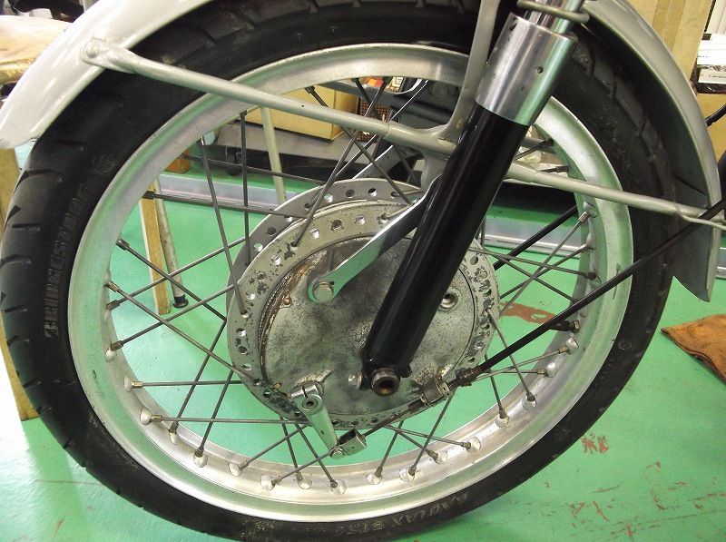 スポークもハブももちろん再利用ですが、CB92の初期と同じように