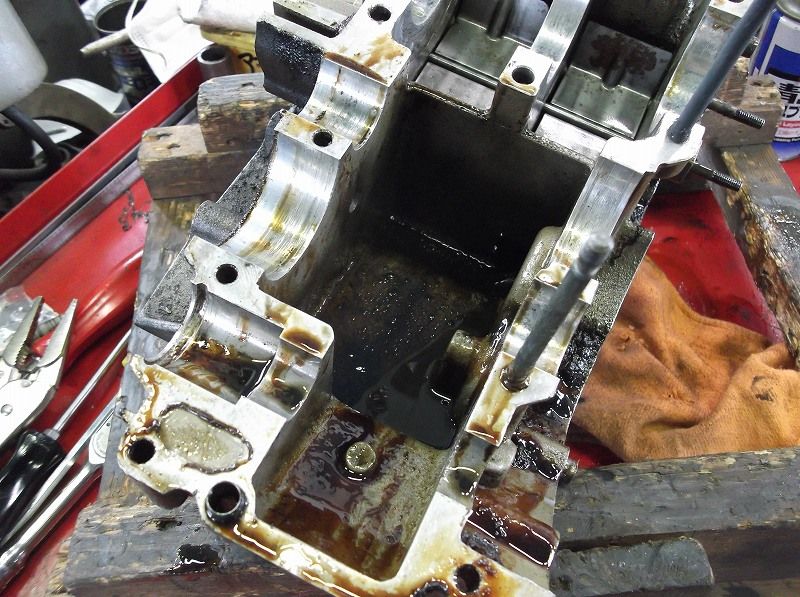 クランクケースを割ると懐かしいカストロの匂いが・・・・
